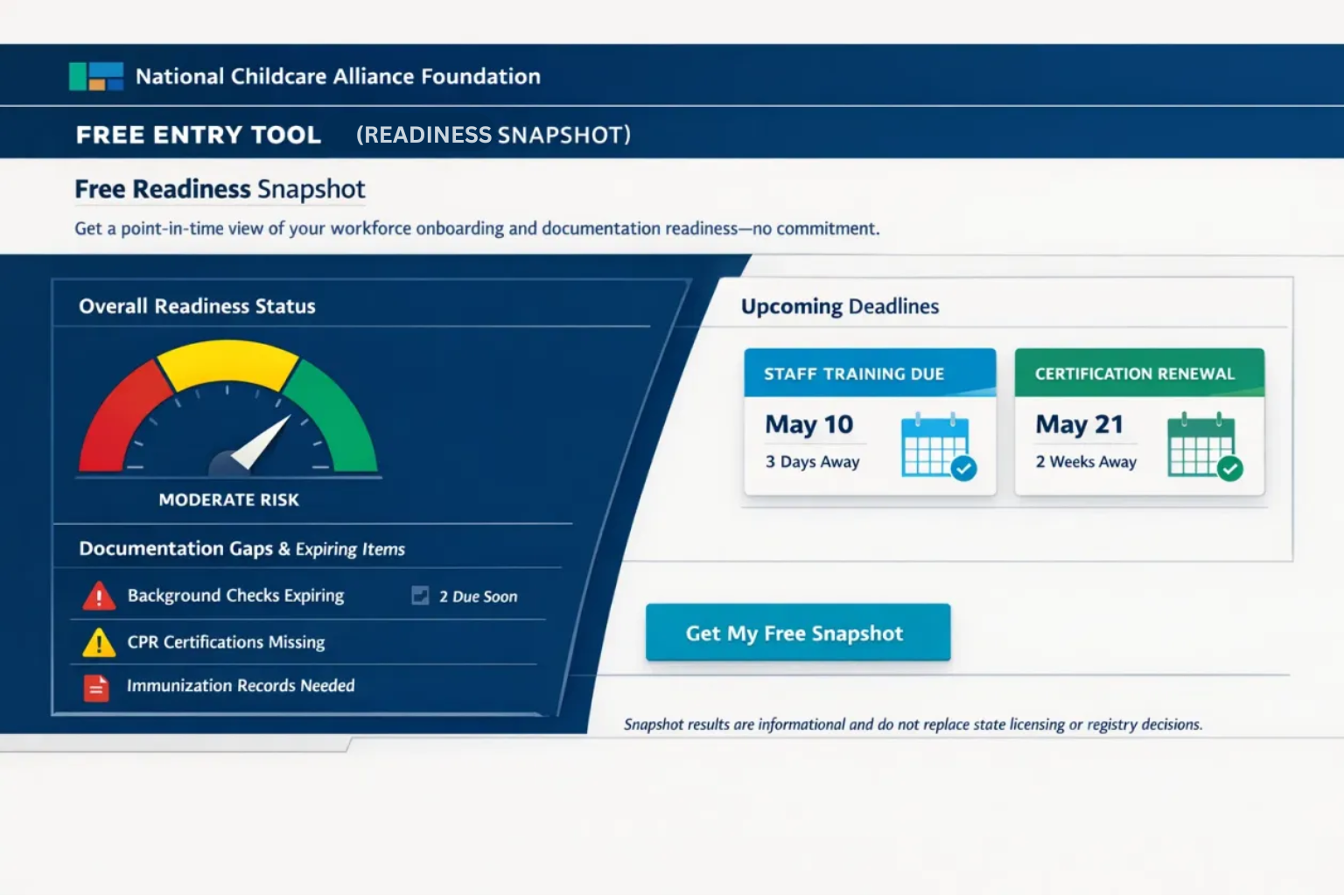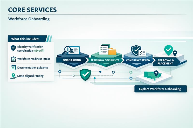 Structured entry into the childcare workforce through coordinated verification and readiness support.