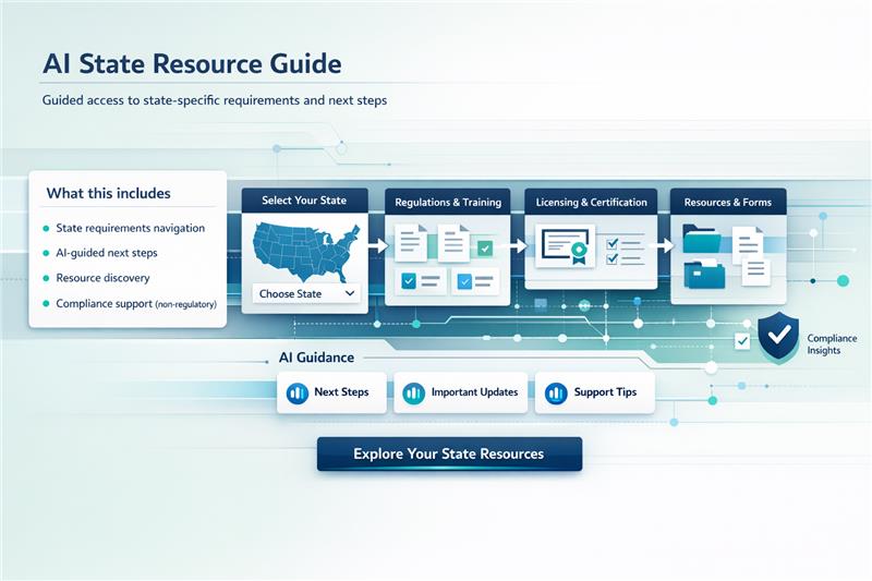 Guided access to state-specific requirements and next steps—without replacing official systems.