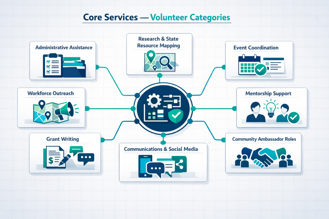 NCAF engages volunteers to support compliance coordination, workforce stabilization, and provider support systems.